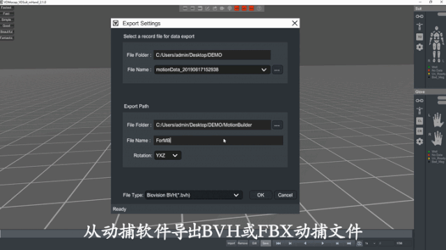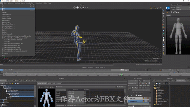 从动捕软件导出动捕文件 ![]() 导入动捕数据到软件 ![]() 创建Actor并与动作捕捉节点对齐